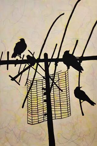 本次“丝路·爱”应邀参展的十位艺术家中,维也纳国立美术学院在读博士生、来自中国的王韵,为展览带来了两幅名为《网》的油画,油画背景中若隐若现的彩色线条,象征当代社会人与人之间千丝万缕的联通关系,而鸟暗喻了迁徙,作品意在全球一体化的文化背景下,发出了中国画家的声音,让人耳目一新。