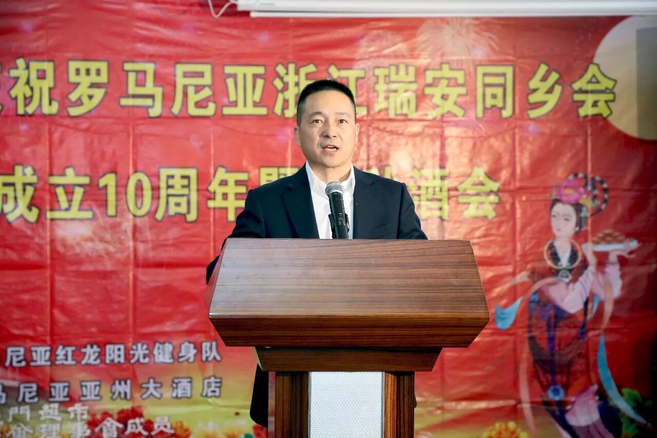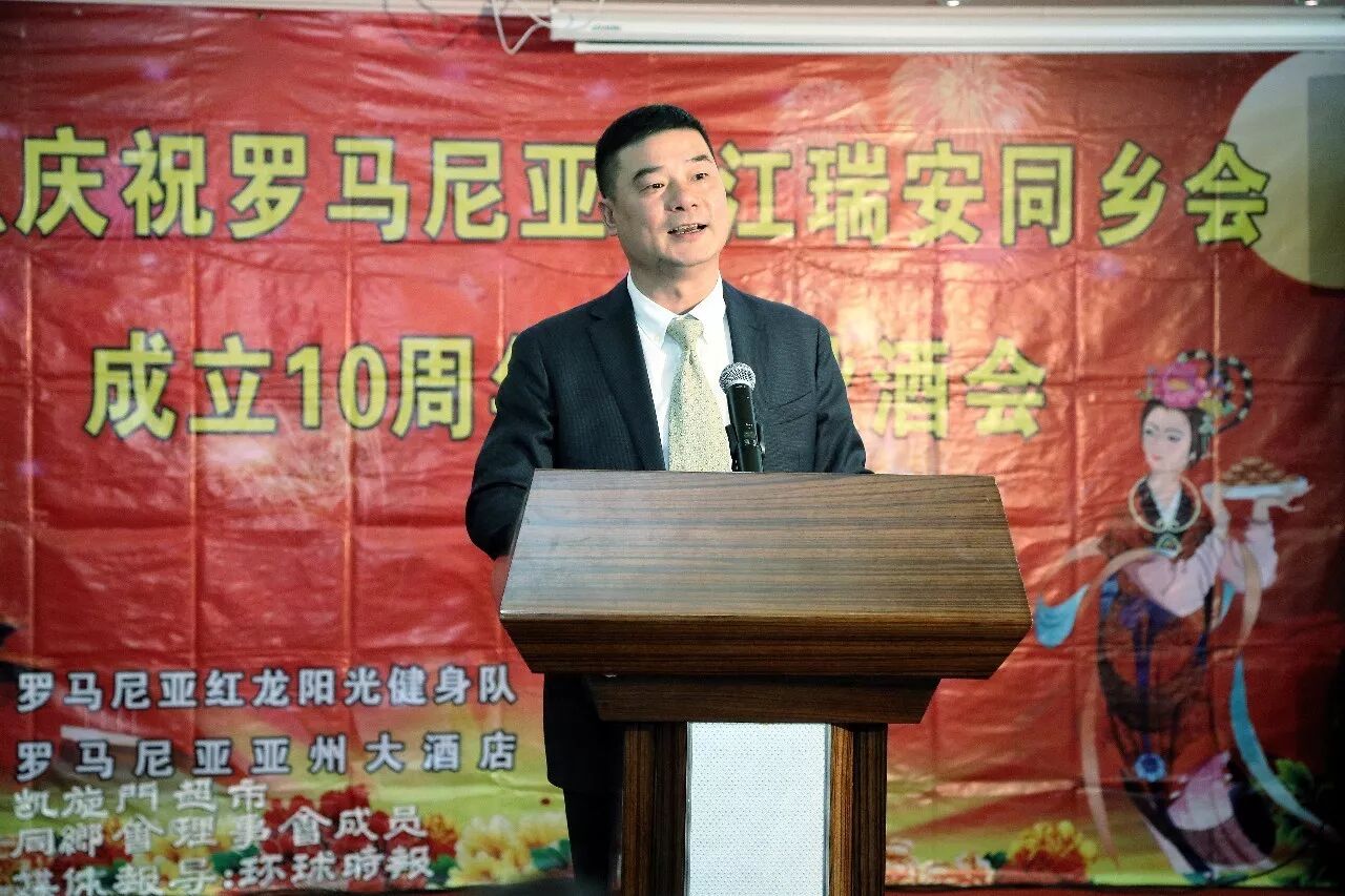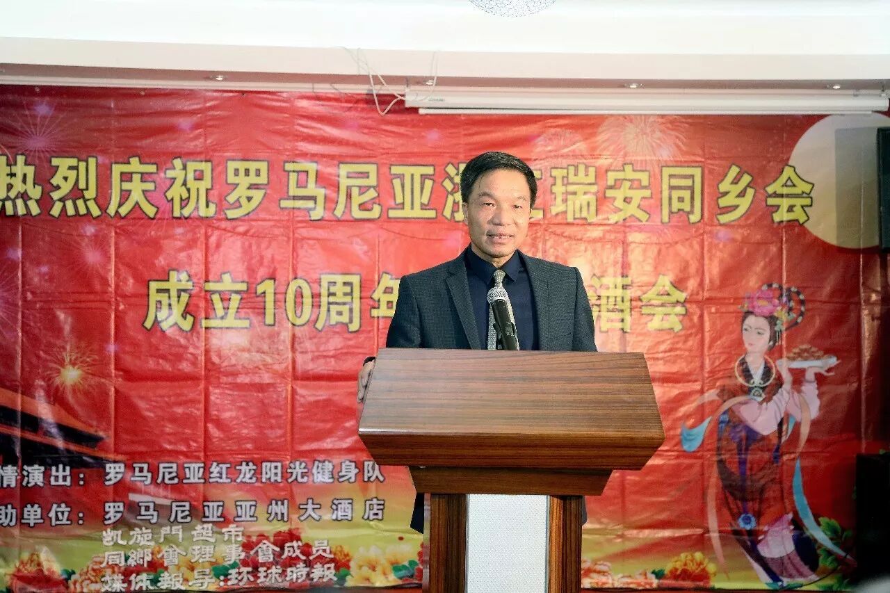 罗马尼亚浙江瑞安同乡会会长杨杰向与会嘉宾介绍了该会成立以来为促进罗中友谊和经贸交流,以及在爱国爱乡、热心慈善公益事业等方面所做出的不懈努力。杨杰表示,罗马尼亚瑞安同乡会将不忘初心,进一步团结旅罗华侨华人和兄弟侨团,把握祖籍国快速发展的机遇,积极参与“一带一路”建设,在注重自身发展的同时,亦将为促进罗中友好交流贡献一份微薄的力量。