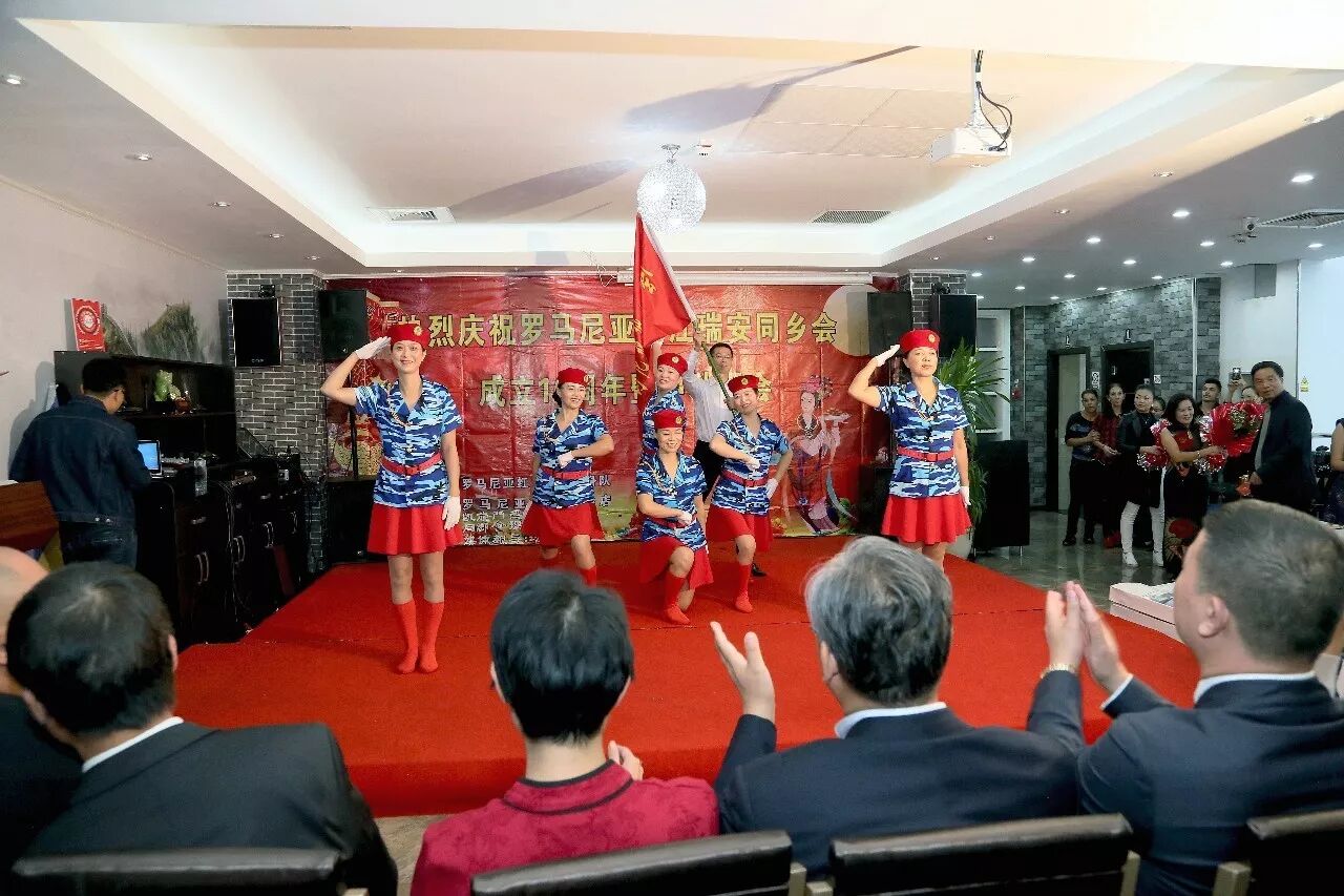 庆典晚会由阮立飞、温干平主持,后台音效何舒畅。罗马尼亚瑞安同乡会永久名誉会长潘继东以及侨界负责人或代表先后在晚会上发言。罗马尼亚红龙阳光健身队和来自该会多才多艺的会员们为晚会表演了歌曲《红旗飘起来》、舞蹈《大姑娘美》、脱口秀《翻说》、大合唱《明天会更好》等精彩的文艺节目。